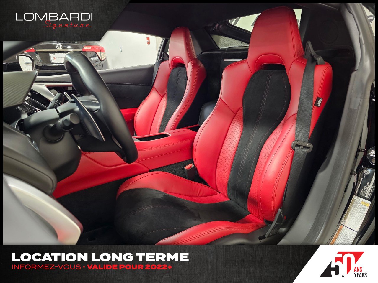 Inside, the NSX offered a driver-focused, luxurious cabin with available carbon fiber interior trim, semi-aniline leather and Alcantara power seats, optional full semi-aniline leather seating, heated seats, and an Alcantara headliner. It was also available with the ELS Studio premium audio system, navigation, and parking sensors through the Technology Package.